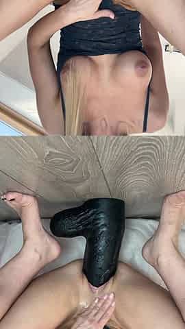 Petite perky tits blonde hoe on her first date with POV blowjob in the toilet wc