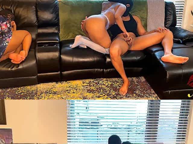We Fuck On The Couch While My Roommate Watches. I let Him Fuck Her Next Cums Twice