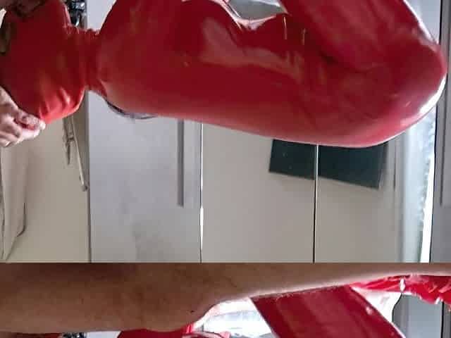 mother I'd like to fuck in latex catsuit gives oral-job and swallows cum