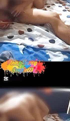 Cuckold filming his wife rubbing a stranger's weenie in her hair