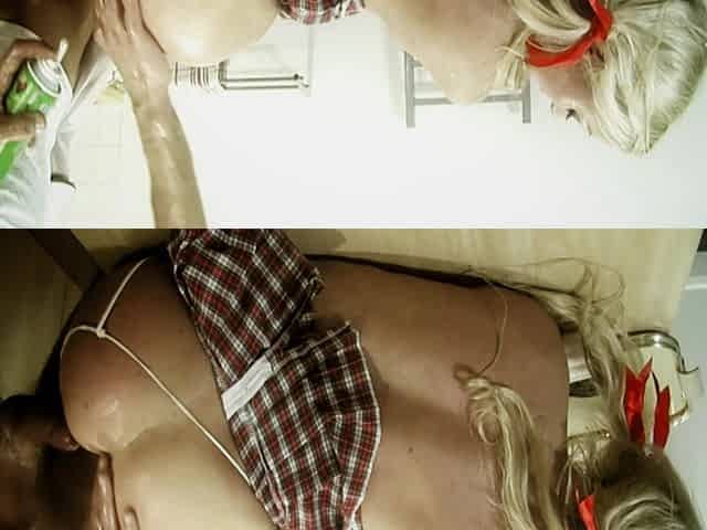 Funny Food Scene-3 busty Blonde MILF Enjoys Creampie in the Kitchen