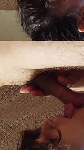 POV smokin' oral pleasure with giant load of cum on my wife's throat