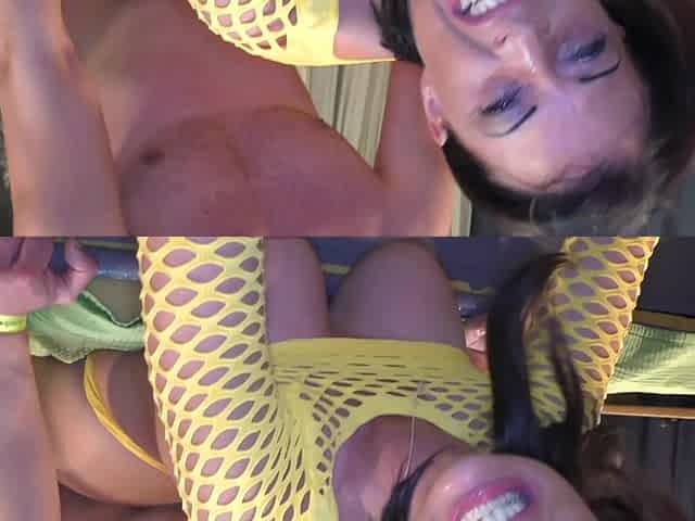 Rough gangbang with a brunette chick wearing fishnet lingerie