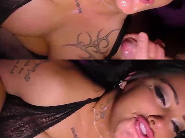Hardcore interracial MMF threesome with a MILF getting cum in mouth