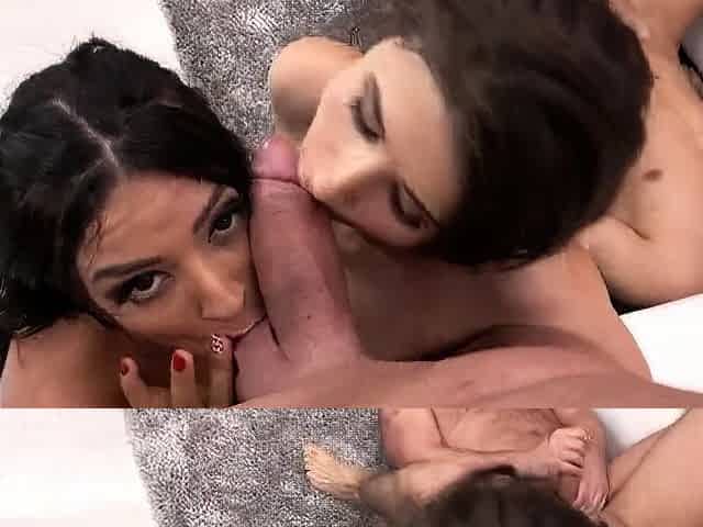 Big tit blonde her busty brunette GF share big cock
