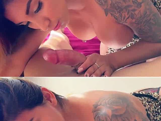 Cumshot amateur MILF suck and jerks dude in the bedroom
