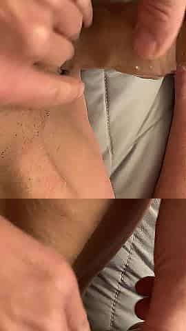 Lustful Man in Sweatpants Masturbates his Large Weenie until Groaning Spunk fountain
