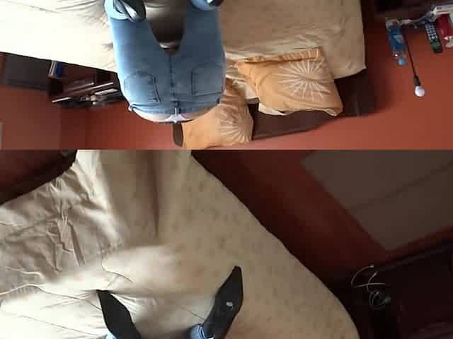 Stepson masturbates watching how stepmother puts on her bikini to go to the beach