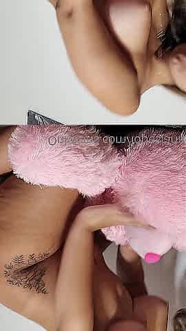 Sarah Jessie bangs herself with a pink toy