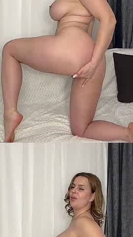 Webcam busty blonde stripped covered by oil anal masturbate