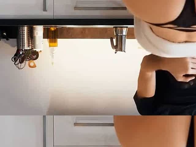 Brunette Babe Fingers Pussy on Stool in Leopard Lingerie