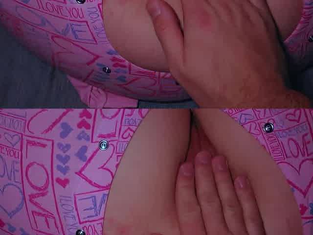 Wife tempts with her breasts. Sex in pink pajamas. Large cum on breasts.