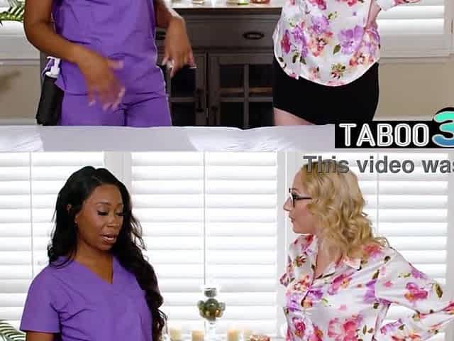 Lesbo black masseus Mocha Menage releaves a MILFs Crystal Clark stress