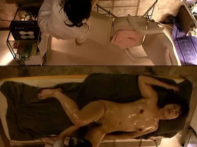 Busty Asian lez masseuse enjoys 69 pussyeating with client