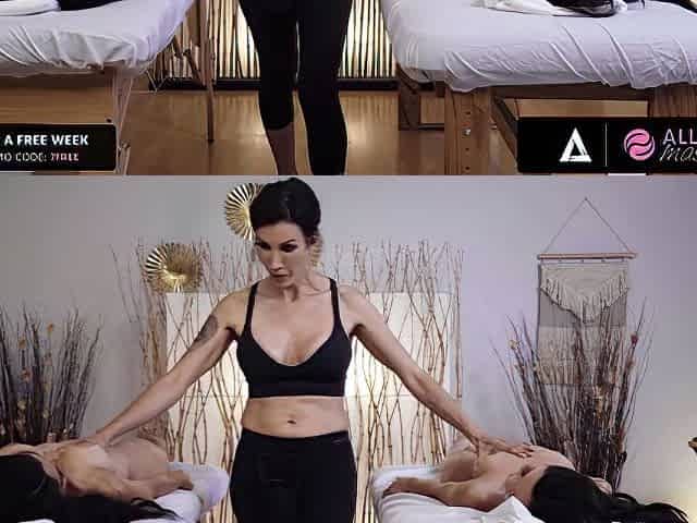 Lena Love And Victoria Puppy In And Licking On The Massage Table