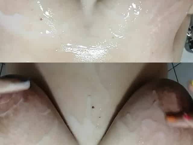 Wow! HERhuge tits with my large wang in oil...and CUM on 'em...