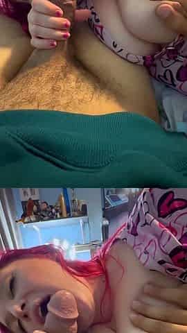 Big-Tit Amateur BBW Gives Blowjob to Huge Cock