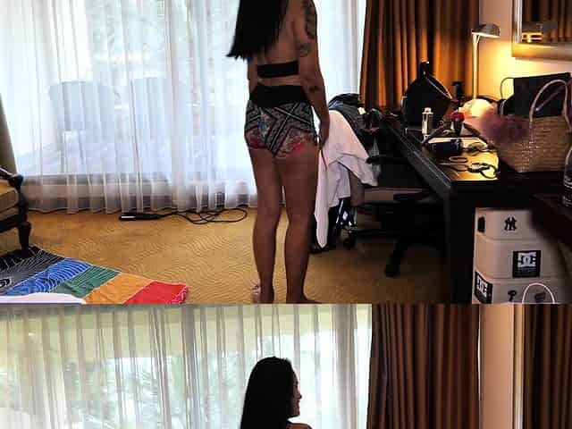 My caught and joined us when I was trying my outfits and this chab was stroking watching.