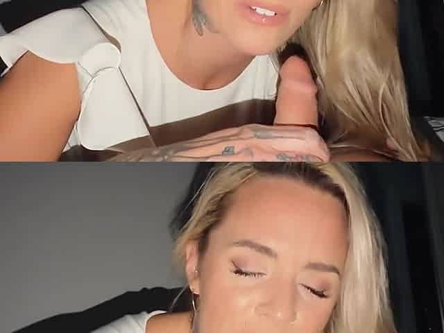 Blonde Hotwife Gives a Hot Blowjob and Receives a Massive Facial