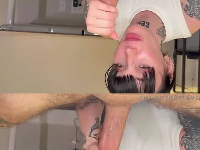 Amateur Blowjob And Ball Licking From Petite Brunette Wife Cum On Tongue