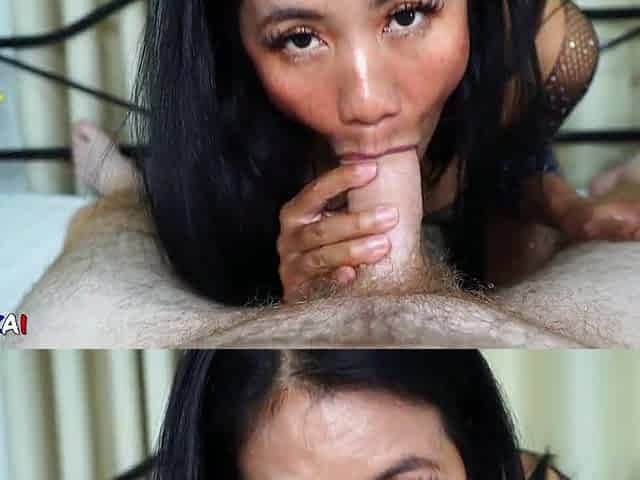 Thai Lady Sucking White Dong in Bodystocking