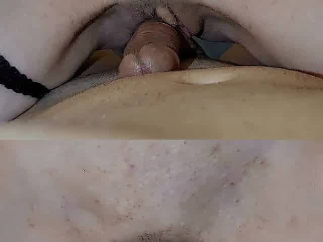 Lazily bang my wife cunt lips with large rod and cum on her butt