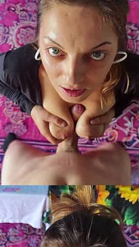 Big-Tits POV Blowjob by a Green-Eyed Amateur Brunette Babe