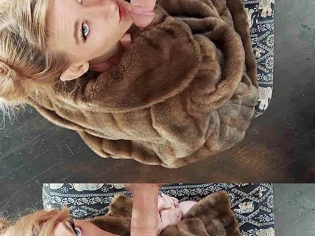 Chick In Furry Coat Sucks Your Weenie and Takes a Biggest Facial