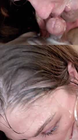 Horny MILF Interrupts Her Man's Shower and Begs "fuck Me" - Gets a Messy Facial