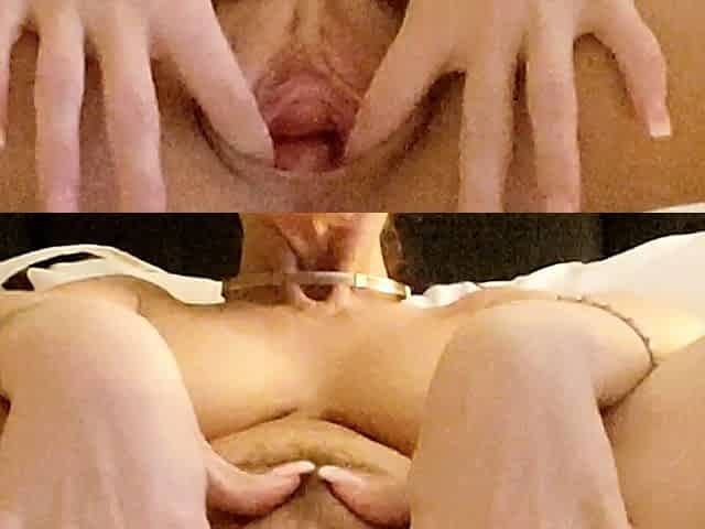 Pink vulva close up of sensual brunette getting kinky
