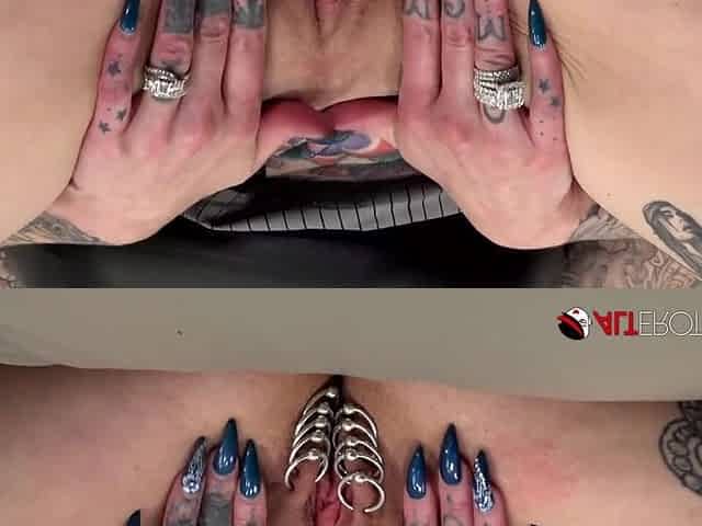 Breasty mother I'd like to fuck Tattu Mama plays with twat piercings
