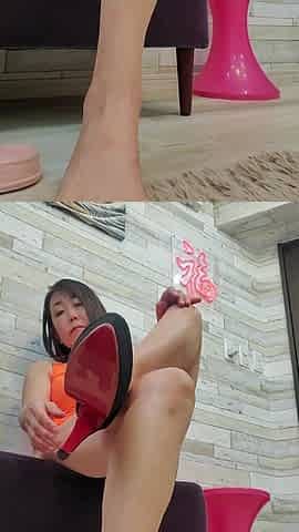 Brunette milf enjoys foot fetish masturbation