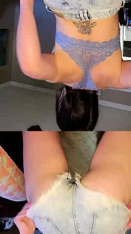 Webcam girl fingers her wet pussy in pink shorts