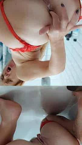 I got horny from torn panties and screwed myself in a soaked chunky gap after a pump in oil