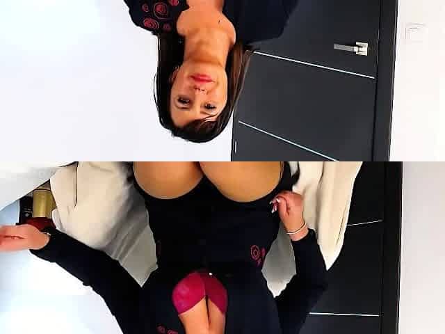 Horny brunette amateur milf solo pussy toying show on couch