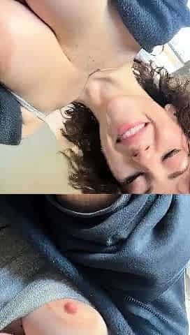 Slim Lalin girl cougar gets in nature's garb in public and discloses her merry round breasts