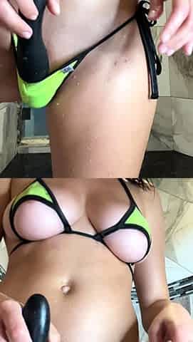 Charlee Pursue Slips Her Sex-toy Between Her Boobs & Deeply Inside Her!