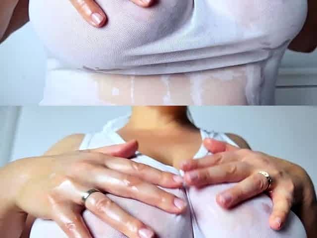 An oiled MILF PAWG rides a dildo. Her nipples show through