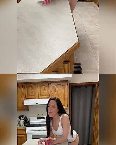 Hannah 44yo toys both holes on kitchen counter
