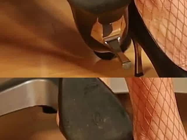 Brown Fishnet Heels Tease - Soles, Dangling & Red Toes