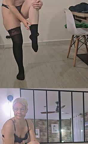 Public Walk and Flashing in Lingerie and Stockings