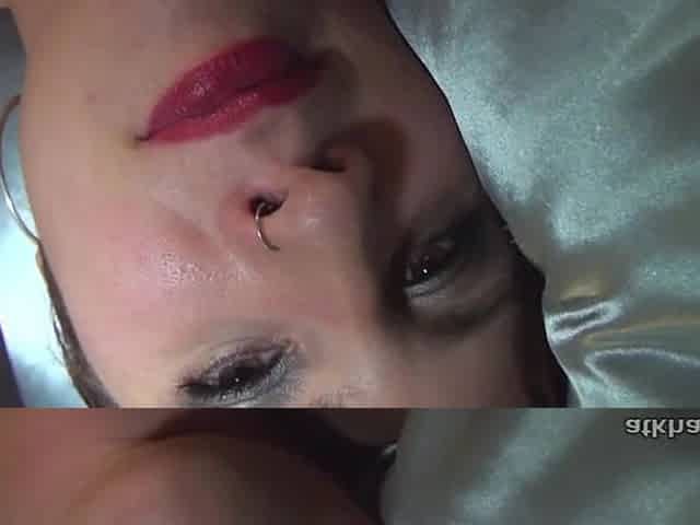 Busty Vickie with pierced nipples fingering her clitoris