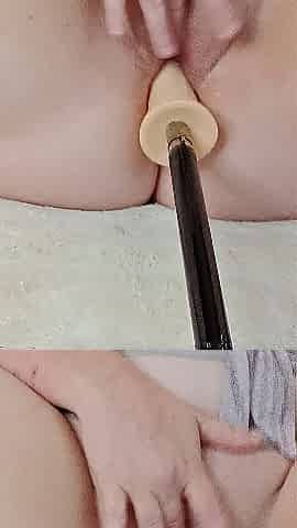 Awesome doggy style anal masturbation with a hot brown-haired gf