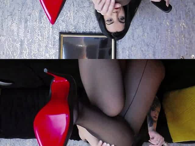 Long Legs and Dripping Pussy Inside Tan Pantyhose