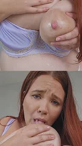 Lactating MILF Self Suckles Her Natural J Cup Tits