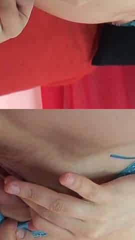 Hotty with large boobs fingering her vagina throughout white hose. Homemade.