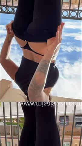 Leather leggings on large butt Nylon tits two