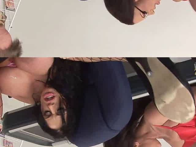 CFNM sex in the office with Melissa Mills wearing nylon stockings
