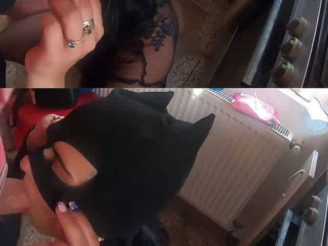 Husband watches wife getting off while jerking off