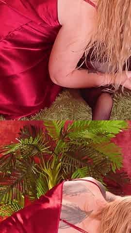 Datezone.com - Housewife in red brassiere and ebony nylons masturbates her twat